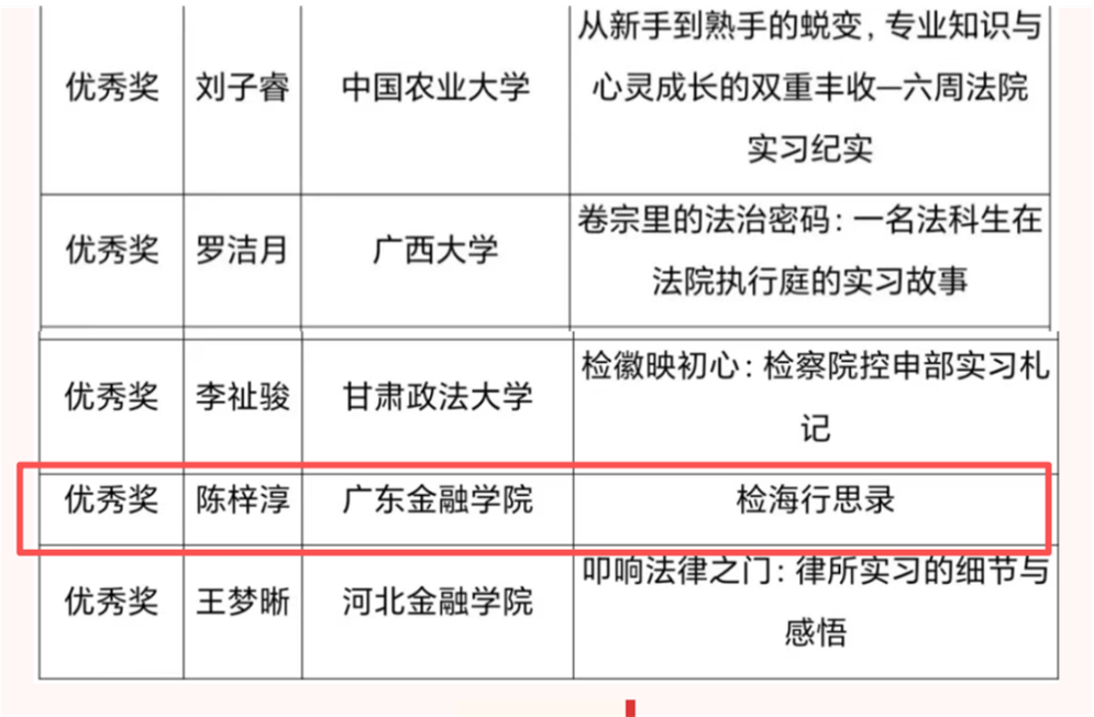 法学教育的沃土,不仅孕育于课堂内的理论积淀,更生长于真实世界的实践磨砺。为激励学生在实习中深度思考、在书写中系统提炼,实现从知识接收到能力转化的跃迁,我校法学院积极组织学生参与本次征文大赛。通过本次参赛,广金学子展现了扎实的法学功底和敏锐的实践洞察力,尽显广金法学生的才华与风采!