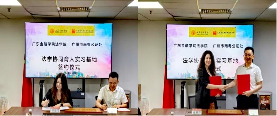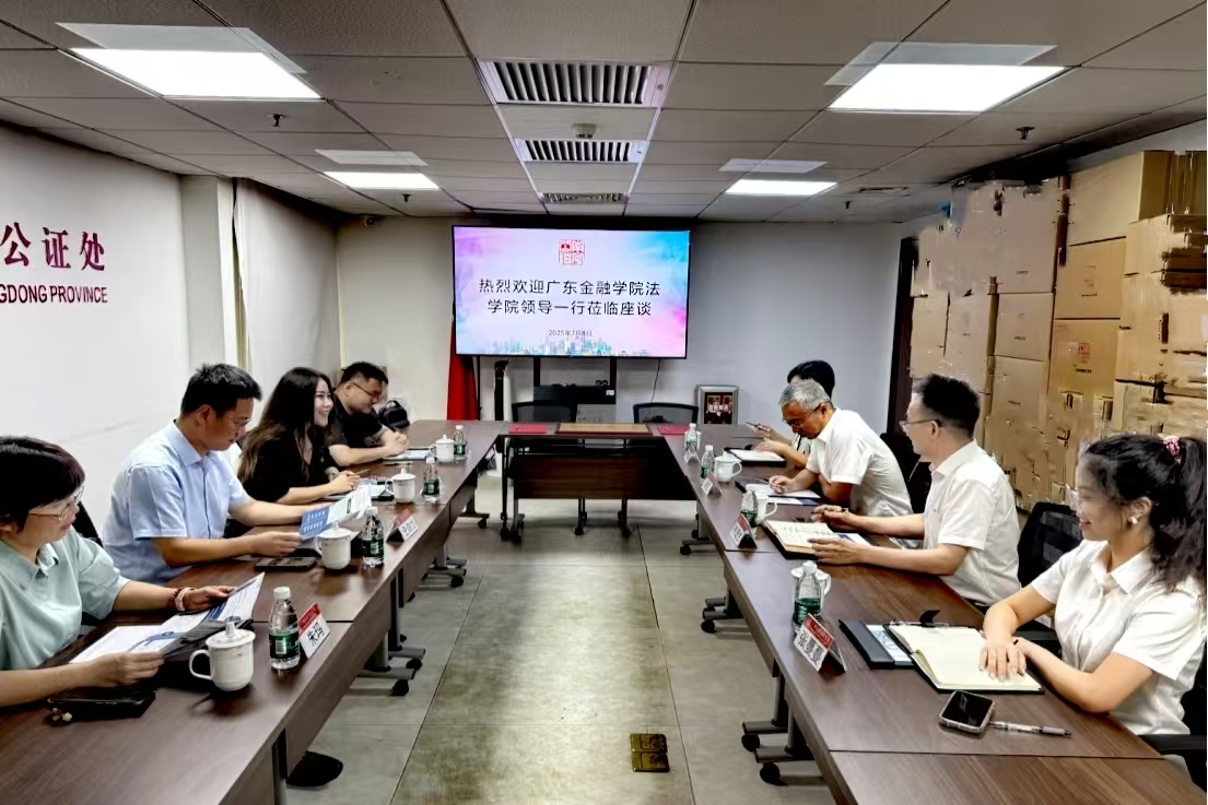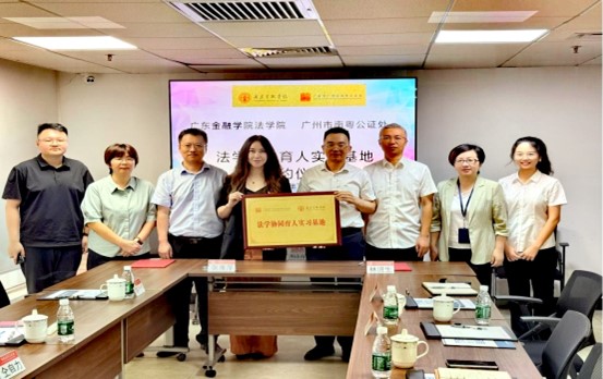 为深入贯彻国家关于加强法治人才培养、深化产教融合的战略部署,积极响应教育部“访企拓岗促就业”专项行动,助力粤港澳大湾区法治服务体系高质量发展,7月8日上午,广东金融学院法学院党委书记仝自力、院长张雅萍、副院长朱玛、法律硕士教育中心主任陈衍桥一行赴广州市南粤公证处开展调研交流。南粤公证处领导班子热情接待了法学院一行,双方围绕协同育人、就业合作等议题深入交流,并举行实习实践基地签约暨揭牌仪式。