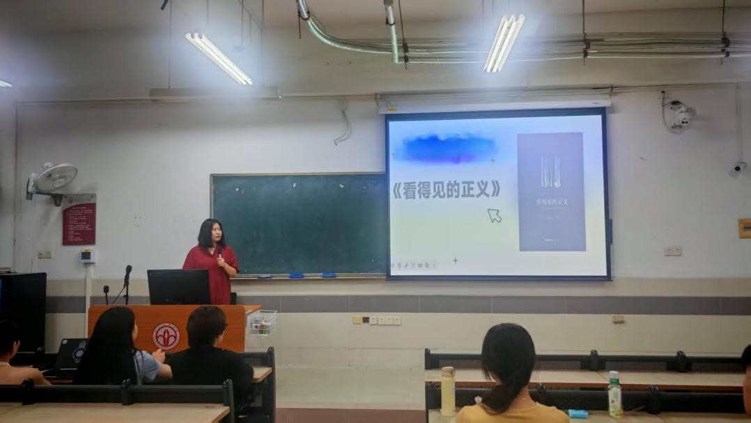 活动尾声,张雅萍教授对四位同学的分享给予高度评价,认为此次活动展现了新生“扎实的阅读功底与深刻的思辨能力”。她结合分享内容提出三点建议:一是构建“体系化阅读”习惯:“《洞穴奇案》的学派碰撞、《法治的细节》的案例分析,都提示我们需将碎片化知识整合为系统框架,通过严肃阅读夯实法理基础。”二是强化“问题意识”导向:“从《罪与罚》的人性探讨到代孕事件的伦理反思,法律学习需‘从生活中找课题,从书本里找答案’,避免脱离现实的空谈。”三是涵养“跨界融合”视野:“无论是《洞穴奇案》的跨学科论证,还是《罪与罚》的人文关怀,都证明法律人需兼具专业深度与综合素养,才能应对未来复杂的法治挑战。”