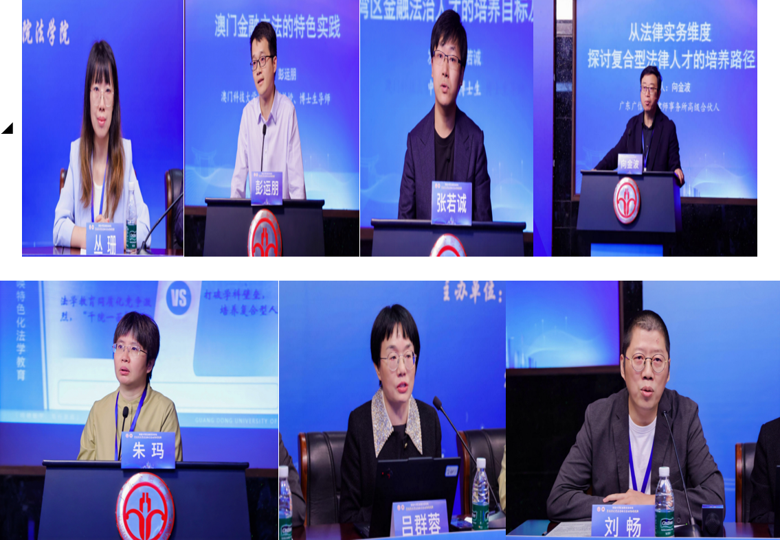 广东财经大学法学院副院长刘薇教授代表分论坛一作总结汇报时指出,本论坛围绕大湾区“金融法治人才培养”主题展开了深度探讨。丛珊老师提出打破领域壁垒推动协同育人;彭运朋老师分享了澳门金融立法的特色实践;张若诚同学代何志辉老师提出培养兼具“牛马精神”与“龙马特质”的人才;向金波律师从实务维度提出复合型人才培养建议;朱玛老师介绍了广东金融学院的 “三融合”育人实践。吕群蓉教授和刘畅老师则分别从健康法跨界培养和实验班创新模式分享了经验。刘薇院长强调,论坛凝聚了通过跨领域融合、实践导向和区域协同来破解人才供需适配难题的共识,为大湾区金融高质量发展提供了坚实的人才支撑思路。