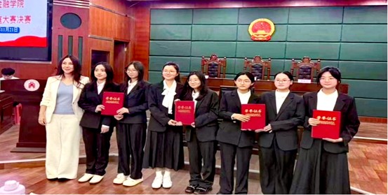 本次大赛是深入贯彻落实习近平法治思想、积极对接国家法治人才培养战略的重要举措。以赛事为媒,以法治为魂,广金学子在思辨中锤炼专业本领,在实践中感悟法治精神。通过高度仿真的沉浸式法律实训平台,同学们不仅提升了专业能力,更加深了对法治精神的理解与信仰。未来,法学院将继续推动法学教育与国家法治建设需求同频共振,深化产教融合、强化实务导向,为培养新时代高素质法治人才贡献力量,助力广金学子在法治中国的宏伟征程中书写不负时代的青春篇章。