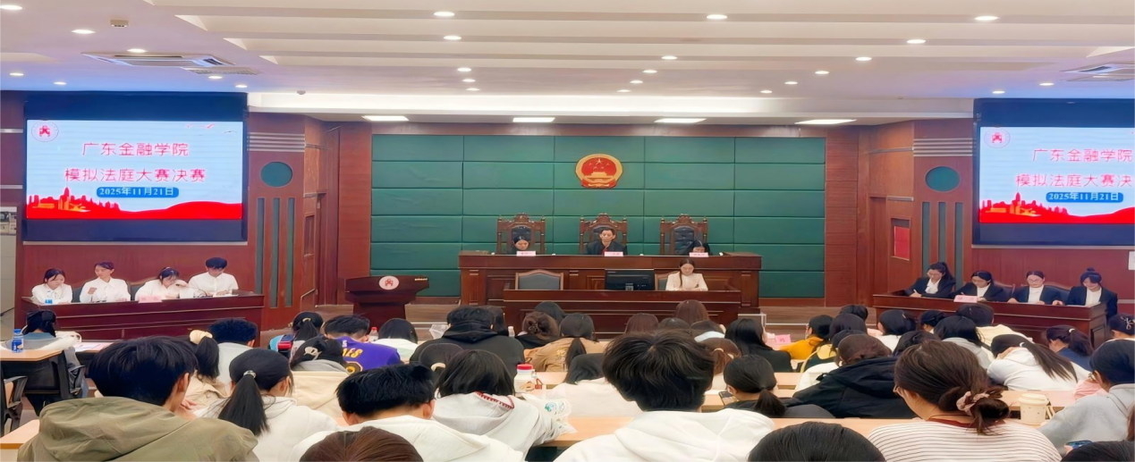 2025年11月21日,广东金融学院模拟法庭大赛在历时两个多月的激烈角逐后圆满落下帷幕。本次大赛由学生工作处与法学院联合主办,作为迎接建校75周年的重要活动之一,吸引了众多学子积极参与,充分展现了广金学子扎实的法律素养、敏捷的思辨能力与昂扬的精神风貌。