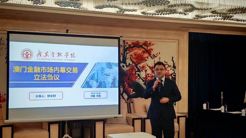 学院师生在年会优秀论文评选中斩获多项荣誉,覆盖教师、硕士、本科三个层次,体现了“产学研用”融合的人才培养体系成效。国际经贸规则系副主任钟文财博士的论文《澳门金融市场内幕交易立法的本土化建构》获优秀青年论文二等奖,钟文财博士在第三分会场作主题演讲《澳门金融市场内幕交易立法刍议》,深入探讨了澳门金融法治的本土化路径。法律硕士研究生黄骏的《数智时代网络用户勾选协议的效力重构与路径优化》获优秀青年论文三等奖。本科生刘真柔美《人形机器人侵权责任认定困境与应对》获优秀青年论文优秀奖。法学院师生同台获奖不仅展现了学院科研的广度与深度,更凸显了“以赛促学、以研促教”的培养模式优势。