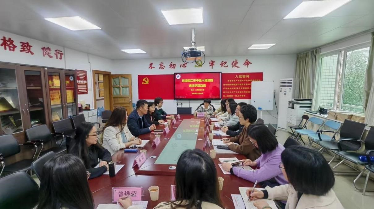 随后举行的交流会上,仝自力书记对阳江市中院陈志鹏主任、徐娟娟副院长一行代表的到来表示热烈欢迎,并介绍了法学院人员结构与党建工作概况。他指出,党建是凝聚合力、促进发展的重要纽带,而实践是检验法学教育成效的关键标尺。期待双方以此次回访为契机,进一步推动组织联建、活动联办、资源联享,共同提升基层党组织战斗力,培养更多德才兼备的法治人才。