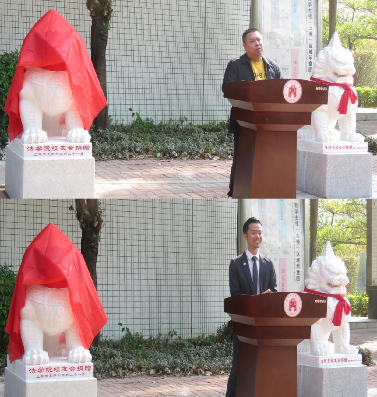 两座獬豸的并肩矗立,不仅是学院文化建设的生动体现,更是对“金融与法治深度融合”时代命题的积极响应。它们守护的不仅是校园的一方净土,更是对每一位学子不忘初心、恪守规则、捍卫公正的永恒提醒。法学院将继续秉持“明德、敏学、笃学、致远”的校训,进一步强化法学与金融学科的交叉融合,推动法治教育与实践教学协同发展。学院将依托獬豸文化载体,持续开展法治宣传教育,引导师生自觉成为社会主义法治的忠实崇尚者、自觉遵守者、坚定捍卫者,为粤港澳大湾区建设与国家金融法治发展贡献更多广金智慧与力量。