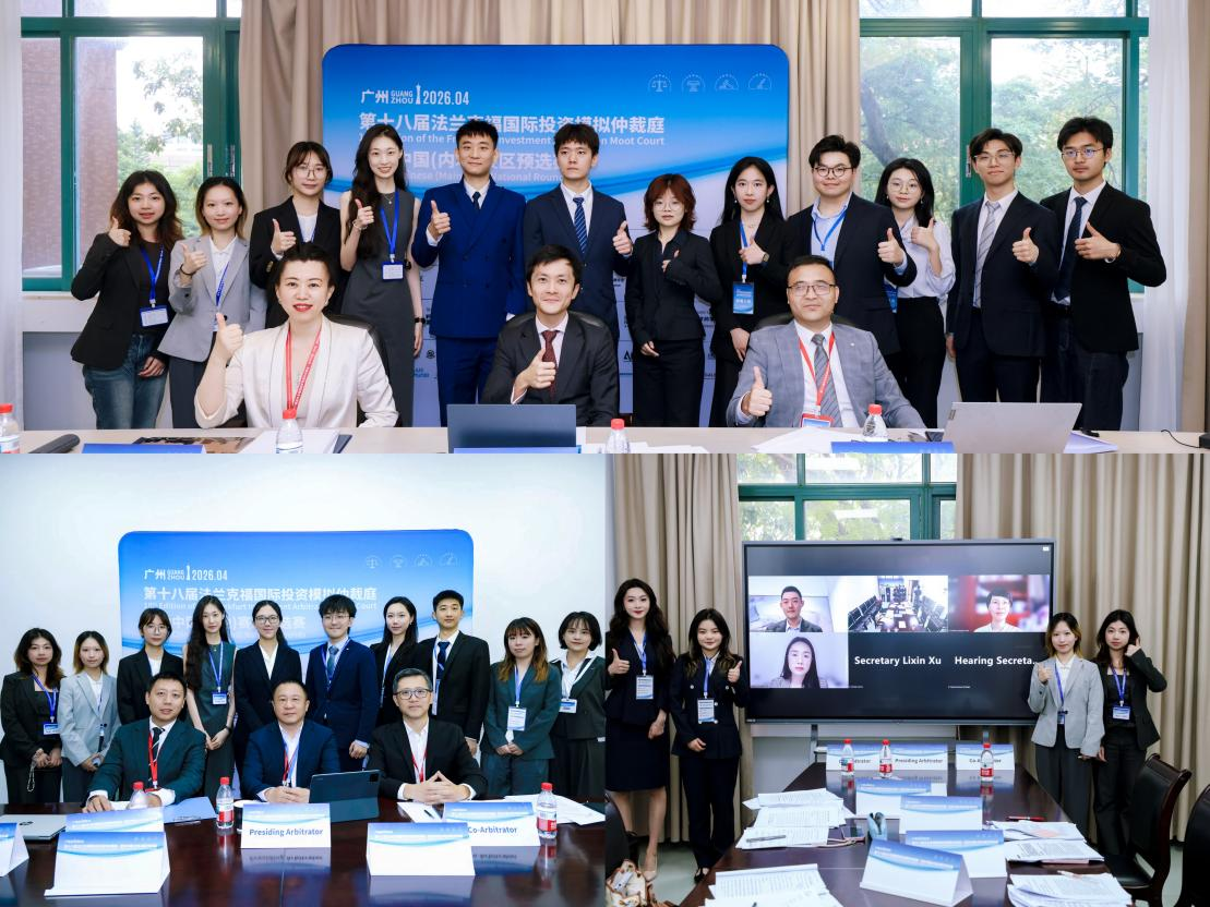 2025年4月8日至12日,第十八届法兰克福国际投资仲裁模拟庭-贸仲中国(内地)赛区预选赛在广州顺利举行。法学院学子在国际经贸规则系主任蒋海波老师和副主任钟文财老师(钟老师同时受邀担任本次赛事仲裁员)的指导下,首次出征赴中山大学东校区参加这一高水平涉外法治竞赛。