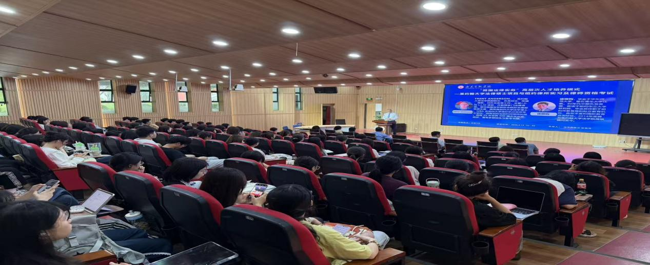 为深入贯彻落实国家关于加强涉外法治人才培养的战略部署,提升法学教育国际化水平,4月14日下午,法学院在北教103教室成功举办“跨国法律实务高层次人才培养模式——圣约翰大学法律硕士项目与纽约律所实习及律师资格考试”专题讲座。讲座特邀美国圣约翰大学法学院副院长TRENT ANDERSON教授及该校高级顾问徐琳钧先生担任主讲嘉宾。我院党委书记仝自力,院长张雅萍,副院长朱玛,院长助理、法律学位教育中心主任陈衍桥,法学系系主任涂缦缦,知识产权系系主任向凌,电子商务及法律系系主任程雪梅,国际经贸规则系系主任蒋海波、副主任钟文财以及法学院本科生150余人共同参加了本次讲座。讲座由张雅萍院长主持。
