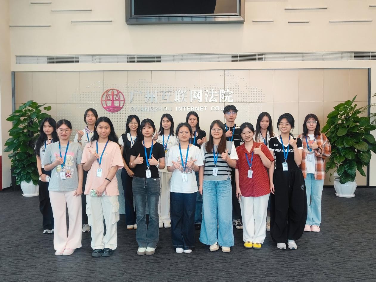 在数字化浪潮深刻重塑法治格局的背景下,为响应国家培养新时代复合型法治人才的号召,服务粤港澳大湾区数字经济发展与法治创新,法学院依托学科优势,聚焦互联网司法前沿,为学生提供了深入接触前沿法律实务的宝贵机会。2025年8月,在法学院朱玛副教授的带队指导下,15名品学兼优的法学院学子赴广州互联网法院完成为期一个月的专业实习,在互联网司法实践前沿淬炼成长。